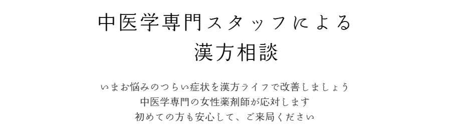 当薬局では、中医学(中国伝統医学)を学んだ専門家が丁寧にカウンセリングし、みなさまが抱えている心や身体の悩みを漢方で改善する手助けをさせていただいております。